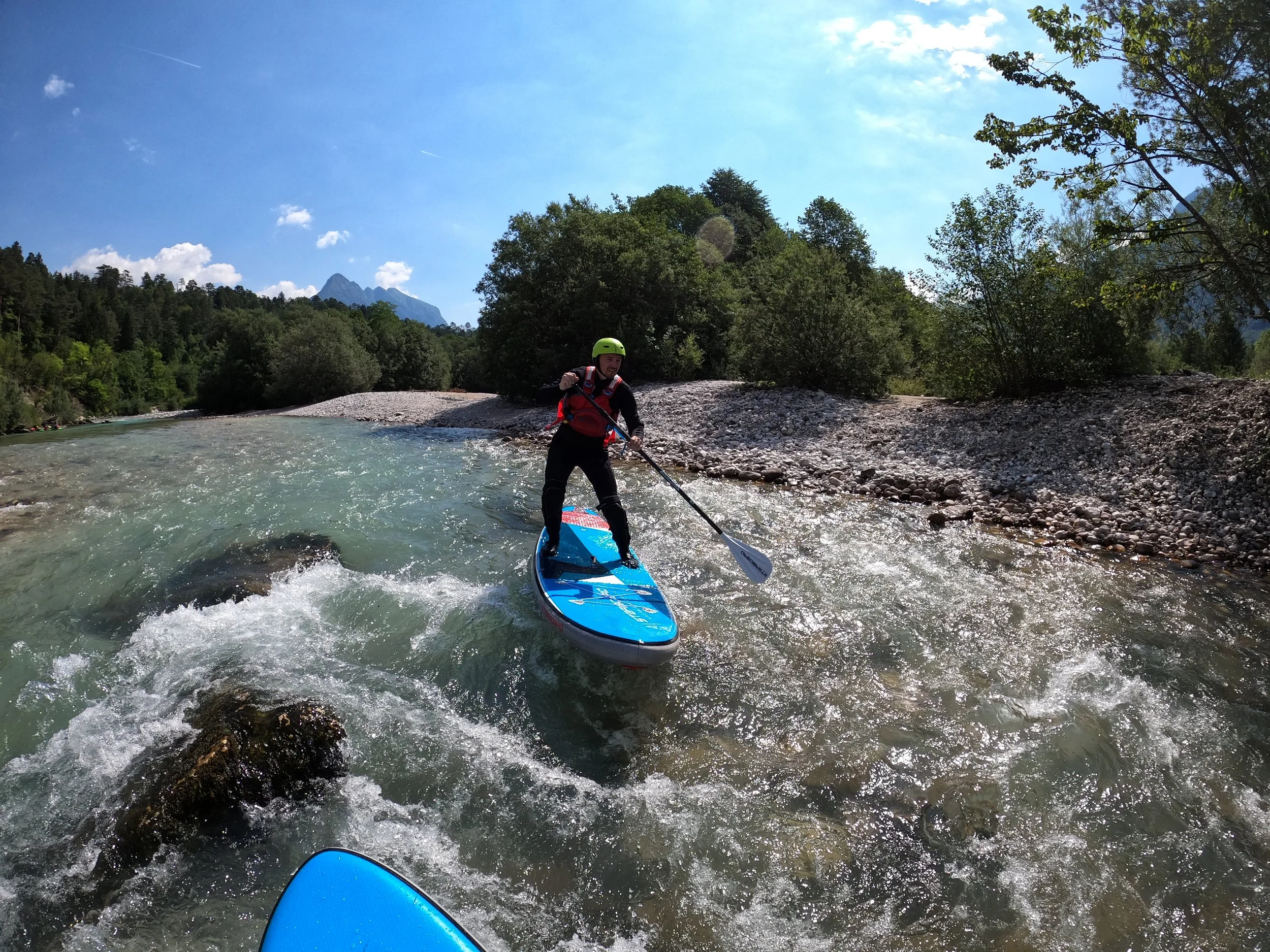 Time to take your stand up paddling to the next level! Are you already confident on a paddleboard, and want to learn more? Our professional certified guide is here to educate you on whitewater paddleboarding and show you how to paddle through rapids confidently. He will teach you based on your current experience and lead you in between the waves of the Soča river.